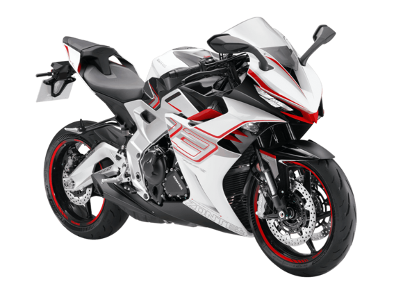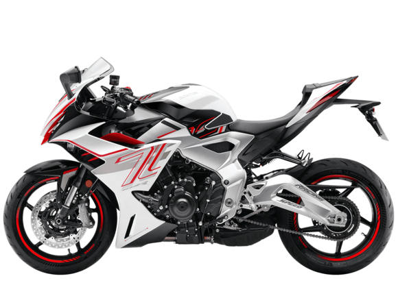 Мотоцикл ZONTES ZT703-RR – спортбайк с мощным двигателем и стремительным дизайном.Покоряй новые рекорды!3-цилиндровый 4-тактный двигатель ZT703 с объёмом 699 см³ способен обеспечить 102 л.с. и разогнать мотоцикл до 250 км/ч. Максимальная мощность достигается при 11 200 об/мин, а максимальный крутящий момент в 74,5 Нм – при 8500 об/мин. Имеет степень сжатия 13,0:1. Двигатель обеспечивает непревзойдённую динамику и выражает свой характер через мощный звук. Запуск двигателя осуществляется с помощью бесключевого доступа. Двигатель имеет 2 режима, переключаемые одним нажатием.Для охлаждения двигателя используется жидкостная система, а за подачу топлива отвечает инжектор MOTION. Трансмиссия имеет 6 ступеней и схему 1-N-2-3-4-5-6. Объём топливного бака 16 литров. Замок топливного бака с электронным управлением.Продуманная спортивная конструкция обеспечивает большую прижимную силу и устойчивость при высоких скоростях. Рама из алюминиевого сплава обладает высокой устойчивостью на разрыв 20 000 Н (2 тонны), при этом имеет вес всего 12 кг. Подрамник весом 2,5 кг имеет устойчивость на разрыв 15 000 H (1,5 тонны). Глушитель установлен в нижней части для смещения центра тяжести.ZONTES ZT703-RR готов к высоким нагрузкам.На мотоцикл установлена регулируемая подвеска MARZOCCHI. Передний амортизатор представлен телескопической вилкой перевёрнутого типа. Сзади установлена многорычажная подвеска, улучшающая устойчивость и эффективно амортизирующая неровности дороги.Колёса представлены алюминиевыми дисками диаметром 17 дюймов с полой конструкцией для снижения неподрессоренной массы. Сзади установлена покрышка шириной 180 мм для повышения площади сцепления и улучшения устойчивости.Противобуксовочная система TCS повышает устойчивость при манёврах. Для торможения установлена дисковая гидравлическая система от BREMBO. Спереди используется двойной диск 300 мм с 4-поршневыми суппортами, сзади диск 260 мм с однопоршневым суппортом. Дополнительно мотоцикл оснащён 2-канальной ABS-системой.На мотоцикл установлена LED-оптика. Приборная панель представлена TFT-дисплеем диагональю 6,75 дюйма. Мотоцикл оснащён системами GPS и Bluetooth. Имеется 2 USB-порта: Type-A и Type-C. Имеется подогрев руля для поездок при холодной погоде.Габариты мотоцикла 2065x745x1145 мм, вес 196 кг. Колёсная база 1450 мм, высота сиденья 795 мм.ZONTES ZT703-RR разбивает встречный ветер и парит над дорогой, не теряя сцепления на самых высоких скоростях.Комплектация и внешний вид мотоцикла могут отличаться в зависимости от поставки. Изображение на сайте не гарантирует наличие тех или иных опций. Уточняйте информацию при оформлении заказа.