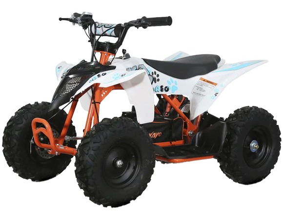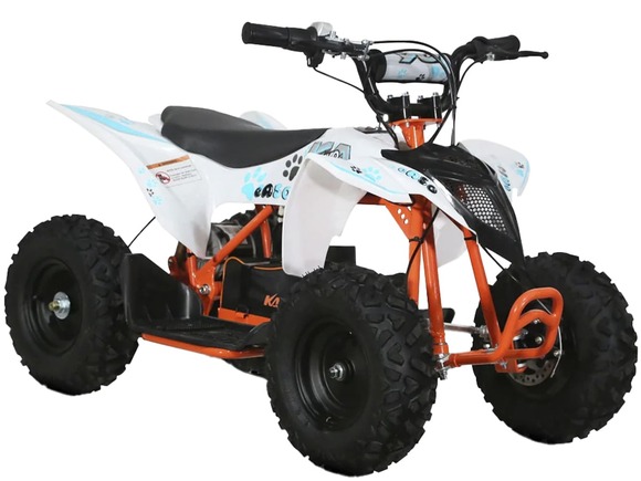 Квадроцикл KAYO EA50 – детская модель с электрическим двигателем для весёлых и безопасных заездов на природе.Оснащён электрическим бесщёточным двигателем мощностью 500 Вт. Обеспечивает плавную и бесшумную езду без выхлопных газов. Свинцово-кислотный аккумулятор 36V12AH обеспечивает запас хода в 90 минут езды. Полная зарядка аккумулятора занимает около 8 часов. Трансмиссия представлена 2-ступенчатой коробкой с реверсом.Диаметр колёс 6 дюймов. Амортизация спереди отсутстсвует. На задних колёсах установлен моноамортизатор длиной 200 мм. Спереди и сзади установлены механические дисковые тормоза.Приборная панель представлена электронным дисплеем, куда выводится информация о скорости, заряде аккумулятора и километраже.Габариты квадроцикла 1030х580х660 мм.Внимание: поставляется в разобранном виде. Предназначен для самостоятельной сборки.
