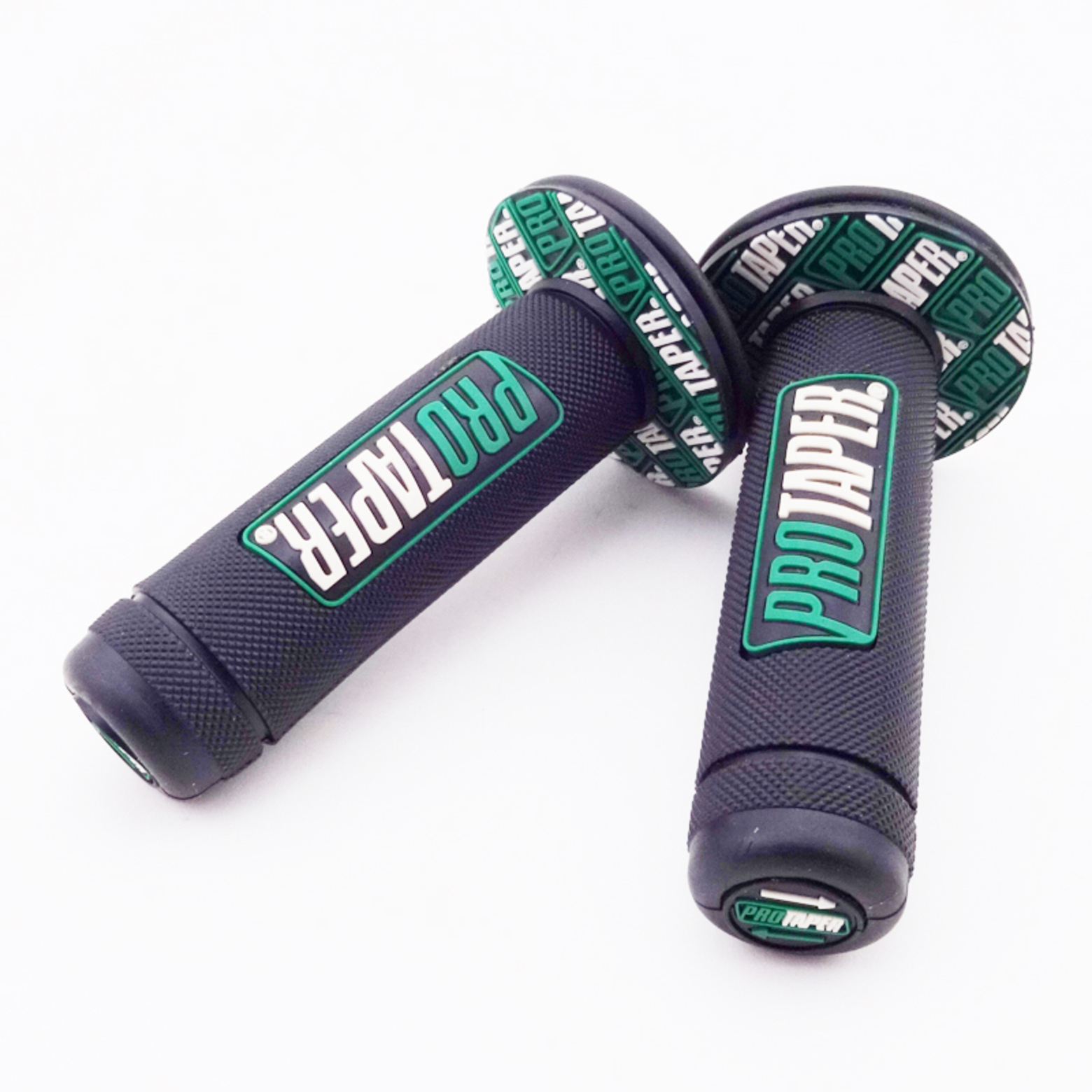 Комплект резиновых грипс Pro-Taper с пластиковой основой ручки газа для мопедов, питбайков, скутеров и эндуро мотоциклов. Левая грипса диаметром 22 мм устанавливается непосредственно на руль, правая грипса диаметром 22 мм интегрирована с пластиковой основой ручки газа стандартного размера.