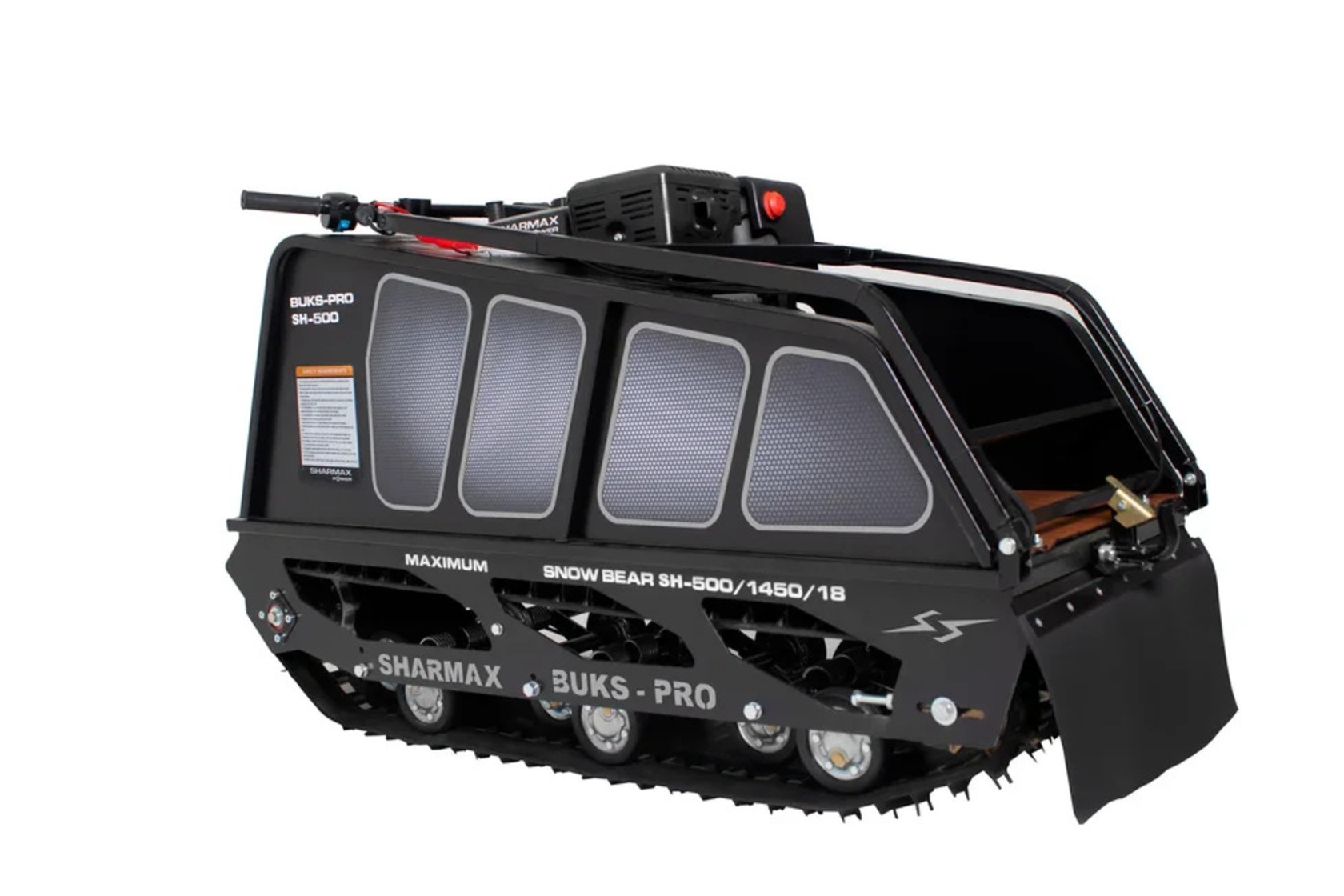 Мотобуксировщик SNOWBEAR SER500 1450 HP18 MAXIMUM настоящий помощник на охоте и рыбалке, решит множество задач в сельскохозяйственной деятельности. Идеальное сочетание цены и качества.Гусеница мотобуксировщиков “Sharmax” шириной 500 мм является надежной и универсальной. Обладает повышенной стойкостью к износу, а специальная форма протектора дает отличное сцепление с поверхностью, при этом сохраняя уверенную маневренность мотобуксировщика.