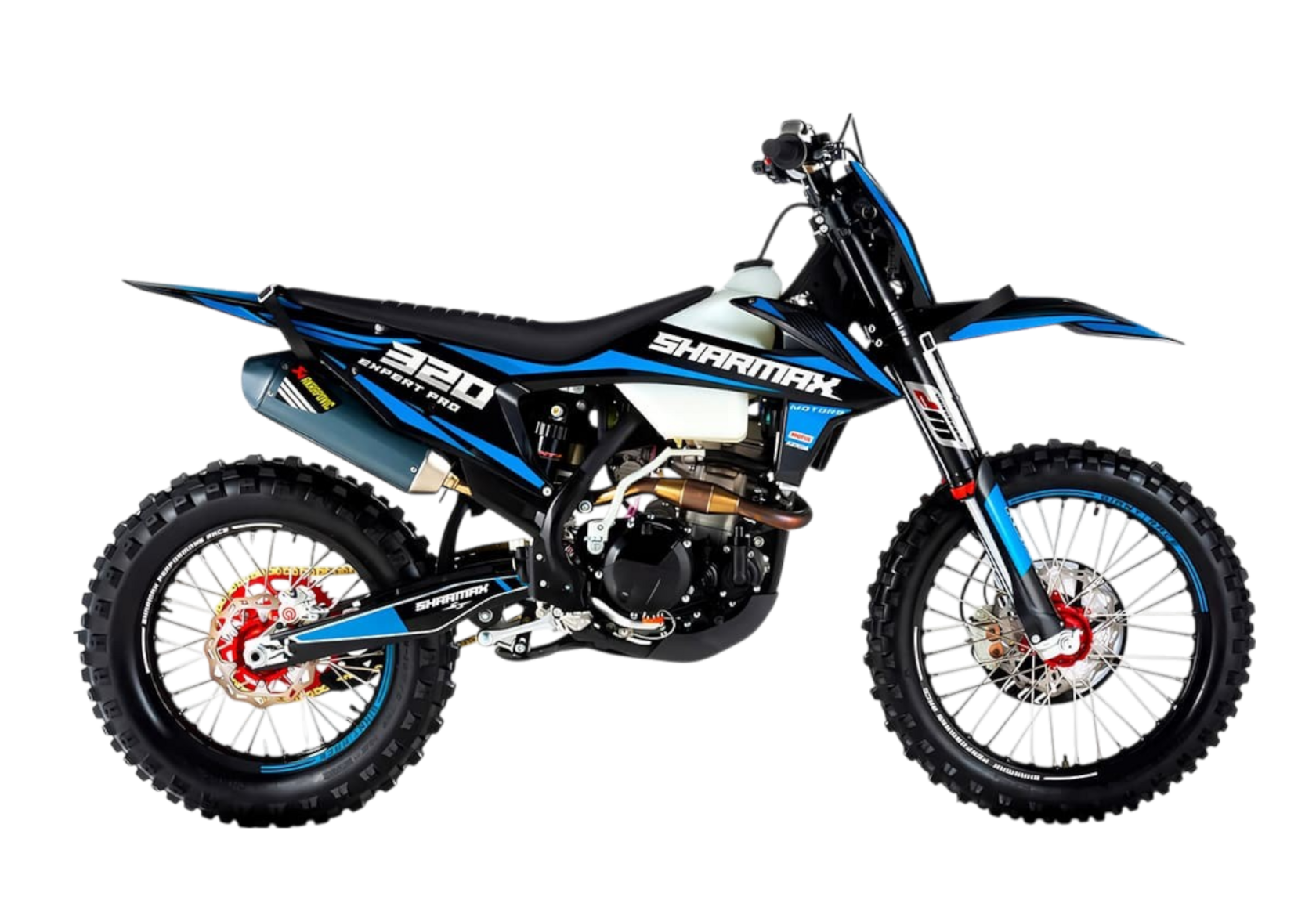 Готовы оценить новый уровень качества в мире эндуро? Sharmax Expertpro 320 — один из самых мощных байков от компании Sharmax Motors. Отзывчивый и надёжный, мотоцикл Expertpro 320 подарит ощущение превосходства даже на самом сложном маршруте. Премиальное качество и проверенные технологии легли в основу этой новинки 2024 года. Мотоцикл Sharmax Expertpro 320 был создан для тех, кто не боится добиваться новых вершин и готов выйти на новый уровень.Мотор ZS182 DOHC — один из самых мощных двигателей во всей линейке Expertpro. 300 куб. см и 37 л. с. разгонят байк до максимума с самого старта. За цепь не переживайте, даже от такого резвого мотора 520 CHOHO GOLD не порвётся.6-ступенчатая коробка передач с шестернями из высокопрочного кованого металла почти не изнашивается с течением времени. Лапка переключения — алюминиевая и складная, не пострадает даже в случае жёсткого приземления.Nibbi PWK 36 — один из лучших в своём классе. Карбюратор от легендарного американского бренда, установленный на десятках лучших эндуро-байков во всём мире. Топливная смесь высшего качества наполнит цилиндры за долю секунды и обеспечит быстрый старт даже в лютый холод.Подвеску Sharmax Expertpro 320 можно настроить под любую поверхность без потери качества. Передняя вилка (с клапаном сброса воздуха) перевёрнутого типа имеет регулировки демпфирования, сжатия и отбоя, а задняя — ещё и с регулировкой преднатяга пружины. Надёжная подвеска поможет не вилять на поворотах и стабильно проходить все сложные участки трассы.Хотите быть на шаг впереди? С быстрым и надёжным электростартером вам нужно лишь нажать кнопку, чтобы продолжить гонку. Проверенный привод и мощный двигатель стартера дадут несколько драгоценных секунд преимущества и сэкономят время в самый важный момент.Sharmax Expertpro 320 оборудован жидкостным охлаждением с водяной рубашкой и датчиками температур. Они включают дополнительные вентиляторы при достижении критических показателей. Помпа повышенной производительности не даст вам “закипеть” даже в +40C.Идеальная геометрия. Симметричная дуплексная рама из хромомолибденовой стали, позаимствованная у профессиональных гоночных байков, обеспечит оптимальную жёсткость и отзывчивость. Благодаря такой форме райдер и байк становятся одним целым, с лёгкостью преодолевая любые препятствия трека.Тормоза мотоцикла Sharmax Motors Expertpro 320 изготовлены на основе технологий компаний Nissan и Brembo. Высокая точность изготовления и качество деталей позволяют достичь аналогичной производительности, высокой точности дозирования усилия торможения, чувствительности и надёжности.Руль на мотоцикле Expertpro 320 изготовлен из прочного облегчённого алюминиевого сплава по технологии переменного сечения FATBAR. Цепкие грипсы позволяют кистям рук меньше уставать и дозировать открытие заслонки карбюратора максимально точно.Шины Kenda буквально вгрызаются в грунт, на оставляя шансов соперникам на поворотах. Агрессивный рисунок шашки, мощный состав в центре покрышки и мягкая плечевая зона обеспечивают идеальный баланс жёсткости и управляемости.