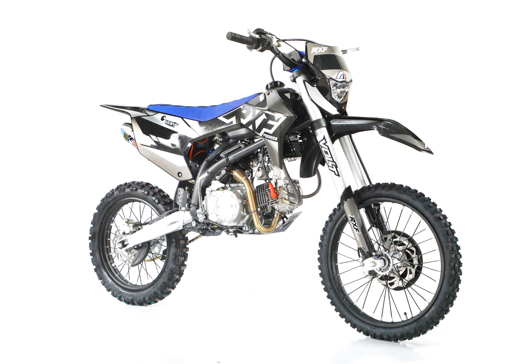 Питбайки компании Apollo родом из Франции. Головной офис компании расположен в Париже. Идеология, заложенная в бренд, носит спортивный характер. Улучшение “породы” происходит в гонках.Модели Apollo RXF (19/16) безошибочно узнаваемы благодаря хребтовой раме с V образным профилем боковой проекции начинающейся от точки крепления маятника под углом 45 градусов. Геометрия рамы была переработана и полностью учитывает размерность применяемых колес, а расстояние от подножек до седла одно из самых больших, что в свою очередь благотворно влияет на езду в стойке.Подвески питов оснащаются вилками и амортизаторами volt, топовые модели имеют регулировки по отбою. На всех моделях установлены двигатели YX, с объемами: 125, 140 и 150 см3 (последний с разными типами ГБЦ) Так же в модельном ряде появился самый кубатурный мотор ZongSheng 190 см3, оснащенный 5 ступенчатой КПП и электростартером.Хочется отметить, что компания Apollo в линейки RXF, закончило полноценную интеграцию и оптимизацию моделей под “большие колеса”. Это можно заметить при взгляде на питбайки в боковой проекции. Расстояние между баком и рулевой колонкой потеряло “зазор”, причина которого крылась в наращивание переднего треугольника под 17 колесо. Сейчас это пространство полноценно поглотил бак, который в свою очередь увеличил объем с 4,7 литров до внушительных 6,5 л. Полностью новый пластик оптимизирован под пропорции “выросшего питбайка”, сиденье стало тоньше и изящнее, боковые щитки увеличены в размерах, глубокий разрез по боковой линии подчеркивает раму, удлиненное заднее крыло и полностью новое передние, не оставляют шансов грязи. Тормозные диски получили пластиковую защиту, амортизатор брызговик, а карбюратор фильтрбокс. Продуманность компоновки питбайка выгодно отличает данную марку от других брендов.Проделанная работа позволила вернуть визуальную целостность модели, которой обладала вся серия Apollo на колесах 14/12.