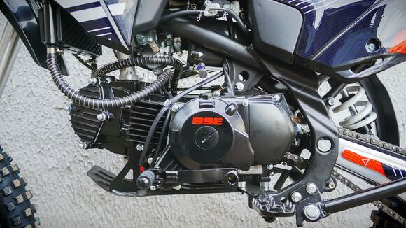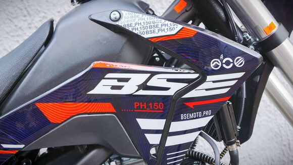 BSE PH150 – король питбайков в линейке BSE.PH150 на колесах 17/14 оснащен самым мощным двигателем среди питбайков BSE и самой богатой комплектацией.Основа PH150 - рама из хромомолибденовой стали повышенной жесткости с литыми усилителями — фирменный знак качества завода BOSUER! Силовая установка питбайка — надежный и тяговитый 4-тактным двигателем YX объёмом 150 см3 с воздушным охлаждением. Максимальная мощность – внушительные 15 л.с. Питает мотор карбюратор MIKUNI VM26. Питбайк оснащен 4-ступенчатой механической трансмиссией. Запуск мотора осуществляется при помощи электростартера или кик-стартера. Подвески с большими ходами: передняя — телескопическая вилка перевёрнуто типа, задняя — моноамортизатор.LED фара головного света, "злая" резина, мощная тормозная система HSK Racing, японские колесные подшипники NTN, защита мотора, руль ProTaper - питбайк полностью укомплектован всем необходимым для покатушек и гонок.PH150 – профессиональный выбор самого продвинутого "питбайкера".