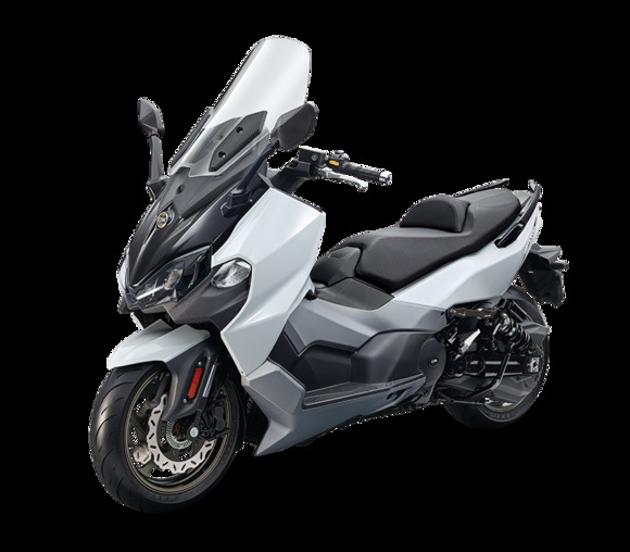 Максискутер MaxSym TL 500i – не просто рядовая новинка, а первый скутер в линейки SYM, который получил двухцилиндровый двигатель.Солидный бонус – полностью светодиодная оптика и массивный глушитель «на стиле». Под сиденьем скрыт огромных размеров бардачок. Другие два бардачка небольшого размера встроены в панель по обе стороны от руля. Один, совсем крохотный, способен вместить разве что документы или небольшой кошелек.Другой, размером побольше, предназначен для смартфона, и оснащен USB-зарядкой.Cкутер в базовой комплектации оснащается ветровым стеклом, поручнями для пассажира заднего сиденья и имеет две опоры – боковую и центральную. Если установить его на боковую опору, то тормозные колодки прижимаются к дискам, и байк не сдвинуть с места, равно как и не завести.Собственно, и с эргономикой у скутера так же порядок. Короткий руль удобен в хвате. Органы управления, расположенные по обе его стороны - привычны. Бонусом на левую рукоять добавили желтую кнопку «Поморгать дальним светом» - прямо чисто российская опция. Но главное, «Максимка» получил удобные кресла.Приборная панель – цифровая с возможностью изменить комбинацию приборов. ЖК-дисплей, разумеется, антибликовый.MaxSym TL 500i – эдакий симбиоз скутера и мотоцикла. Здесь даже четырехтактный двухцилиндровый 40-сильный мотор объемом 465 см3 имеет мотоциклетное крепление. Добавим сюда укороченную базу, одностороннюю маятниковую заднюю многорычажную подвеску с моноамортизатором (прямо как у спортбайков) и перевернутую вилку с траверсой спереди, идеальную развесовку 50/50, ABS… и получаем максискутер с совершенно легковыми и отнюдь незаурядными ездовыми характеристиками. Причем особенность двигателя «Максимки» в том, что его цилиндры расположены горизонтально параллельно друг другу, и лежат они практически у основания рамы, вдоль которой и двигаются поршни. Такое решение позволило не только снизить вибрации, которых у TL 500i фактически нет, но и сместить ниже центр тяжести, что, в свою очередь, положительно сказалось на устойчивости и управляемости